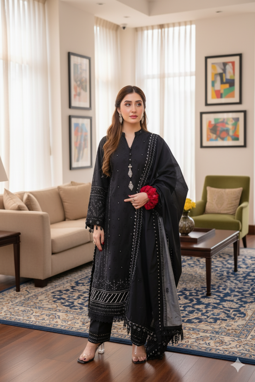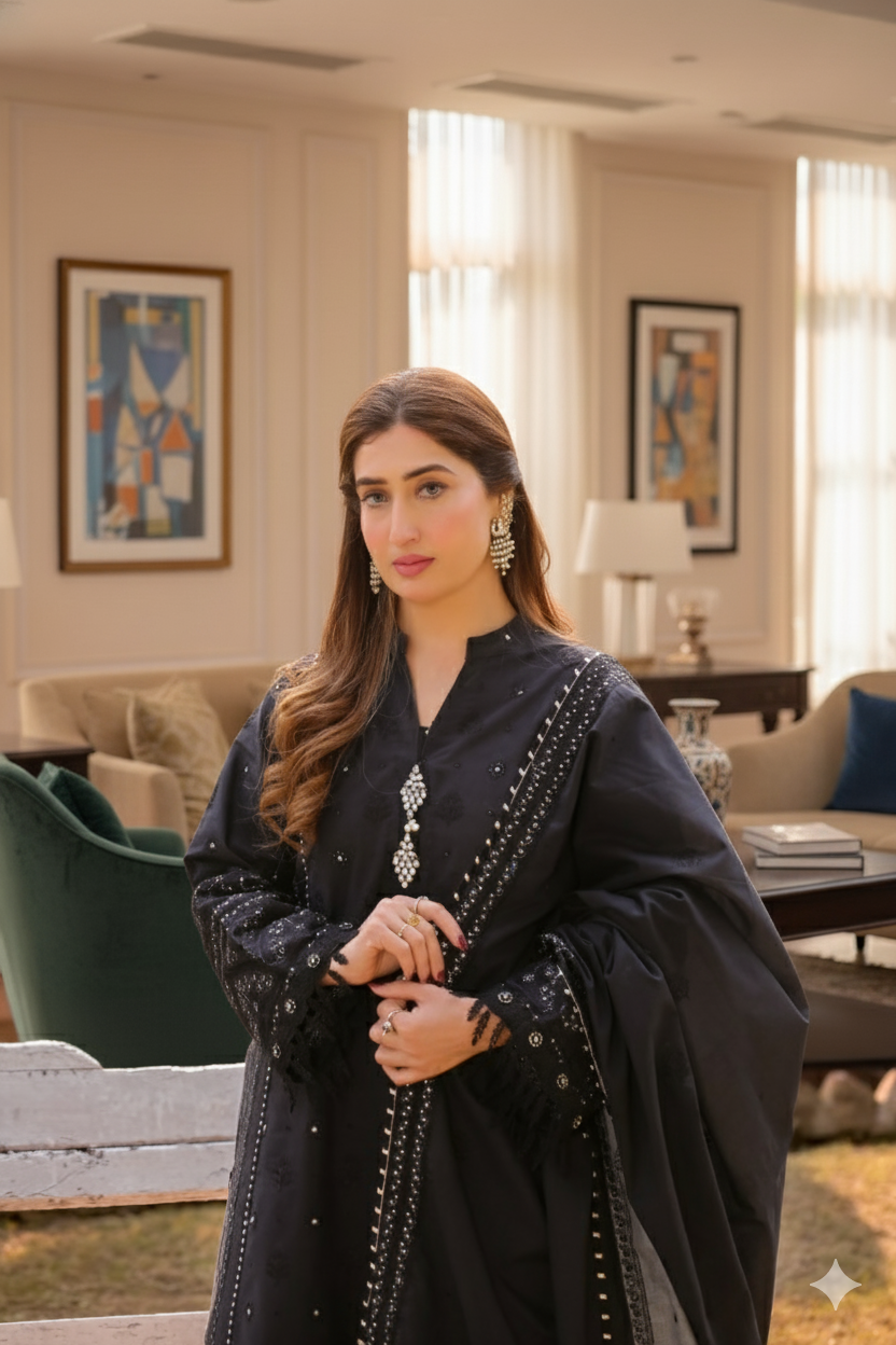 Saadia Ahmed LWSU-25CK304 ChikanKari Black